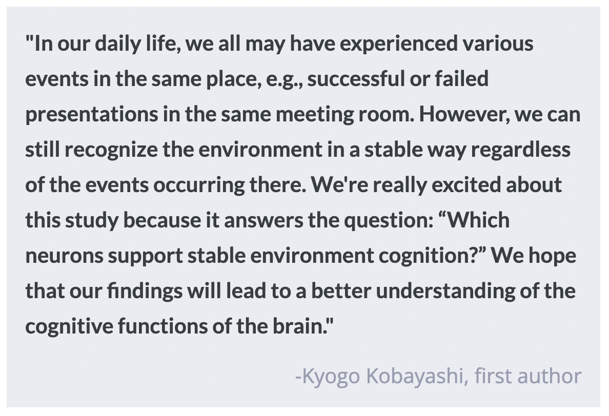 A subset of “environment cells” in the hippocampus create an internal representation of specific environments — regardless of salient events that may happen — allowing us to maintain stable memory of distinct environments.