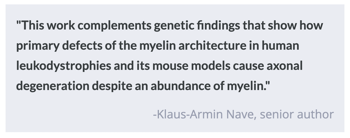 Multiple sclerosis (MS) is an inflammatory autoimmune disorder that affects the central nervous system and is characterized by axonal degeneration. Myelination, or the process by which oligodendrocytes encapsulate a neuron’s axons with an insulating sheath of myelin, is largely considered to serve an insulating and predominantly protective role for axons. Based on this assumption, demyelination, or the destruction of the myelin sheath, has been proposed as a likely cause of the axonal degeneration seen in autoimmune disorders. However, recent evidence that axonal damage actually occurs before the onset of demyelination suggests a more complex role for myelination in autoimmune disorders. This week in Nature Neuroscience, Schäffner, and colleagues utilize MS human biopsies and mouse models of demyelinating disease to investigate the role of demyelination and oligodendrocyte function in axonal degeneration.